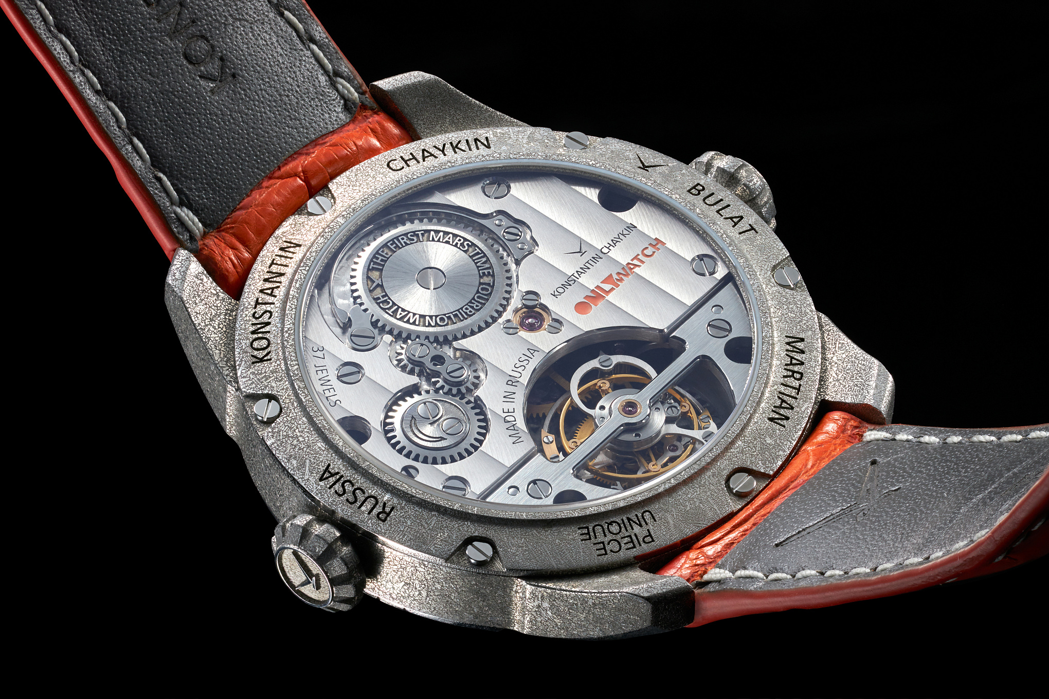 Watchmakers include a tourbillon in their timepieces for a number of reasons – for the precise measurement of time (reflecting the original aim of its invention), for setting records for precision at chronology competitions, for demonstrating the skills of a watchmaker – since the tourbillon’s intricate, challenging design is by no means attainable for everyone, for the marketing of a watch brand, as a way to implement a mechanical kinematic wonder in a timepiece – a way to entertain its owner, for technical watches (for aviation or diving, for example), for jewellery and decorative watches… The only reason missing in our cosmic age is to create a tourbillon which could be used by conquerors of other planets. This has been resolved by Konstantin Chaykin with the first-ever Martian tourbillon in the history of watchmaking – the Martian Tourbillon Only Watch 2021 Piece Unique.