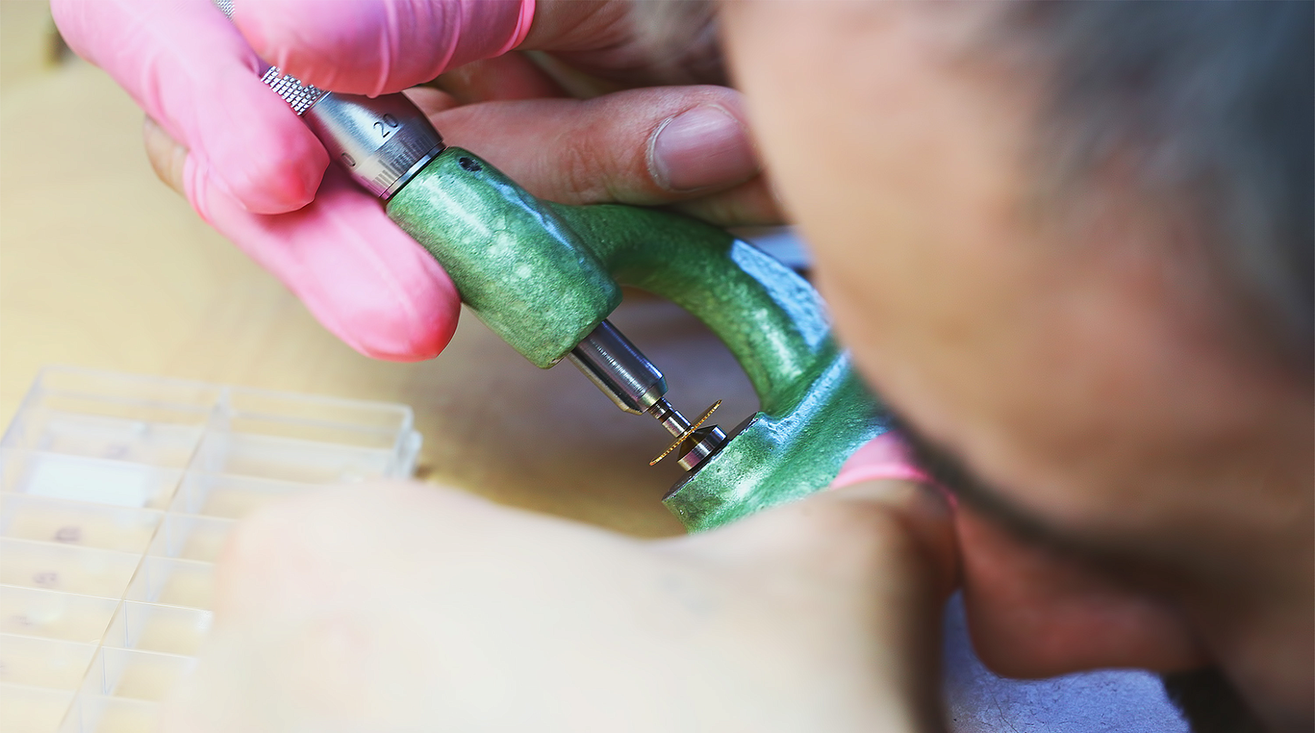 Due to the unique ‘Dracula time’ function invented by Konstantin Chaykin, the Joker-indication module of a Dracula watch is much more complicated than that of the original Joker and consists of 16 more parts, bringing the total number of components in the movement to 77. The dial of the Dracula watch is also more difficult to assemble and consists of twice as many parts as that of the Joker.