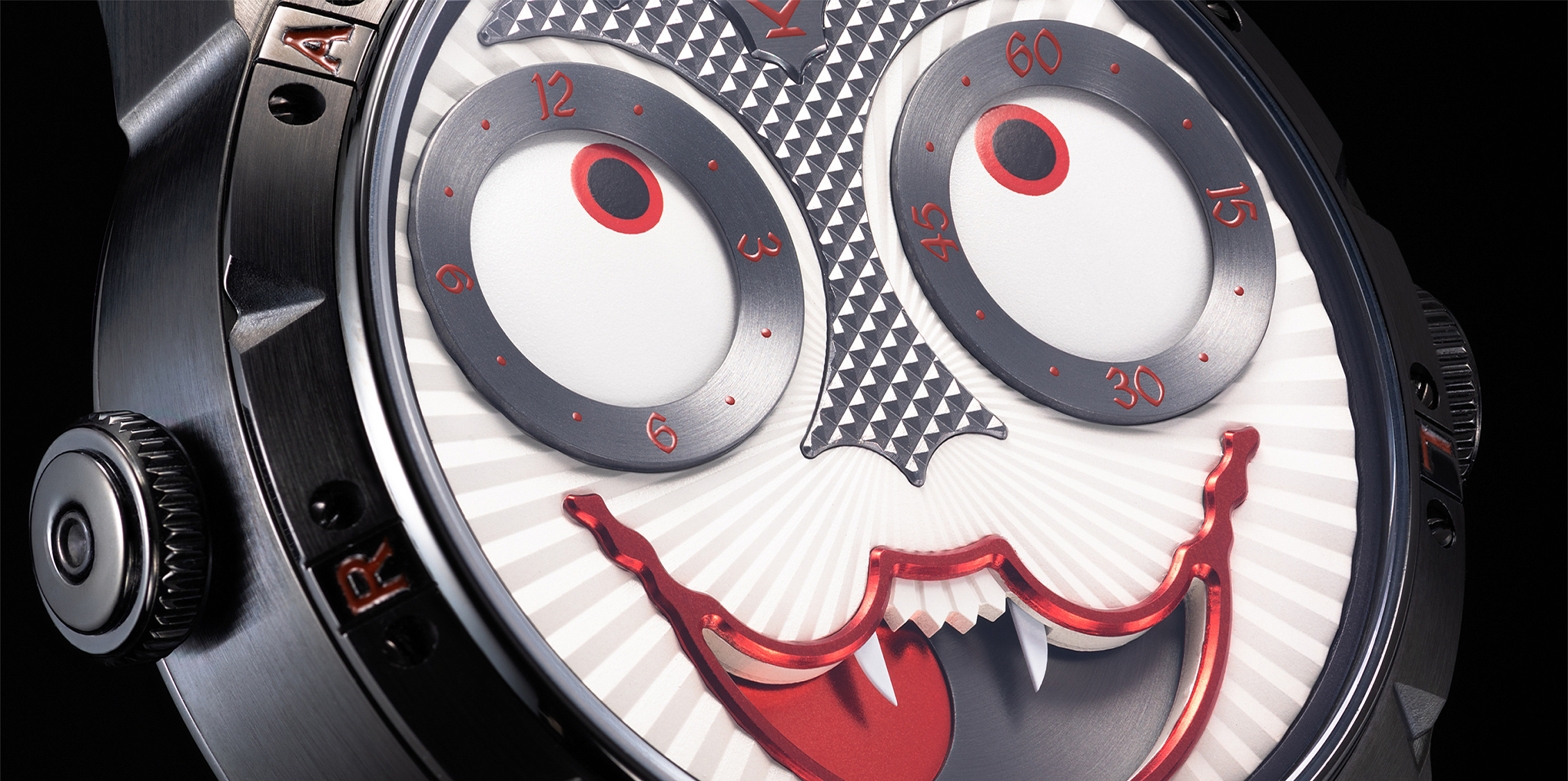 At night, however, the expressive, ever-changing and yet always familiar Joker face is transformed. As if to celebrate nightfall, when, according to Halloween traditions, the most mysterious, terrifying and bloody events take place, the fangs of the Dracula watch are revealed. Shortly before midnight, just like in the legend, the fangs begin to grow. At 01.00 they are fully extended, at 03:40 they begin to retract and at 05:30 they are completely hidden.