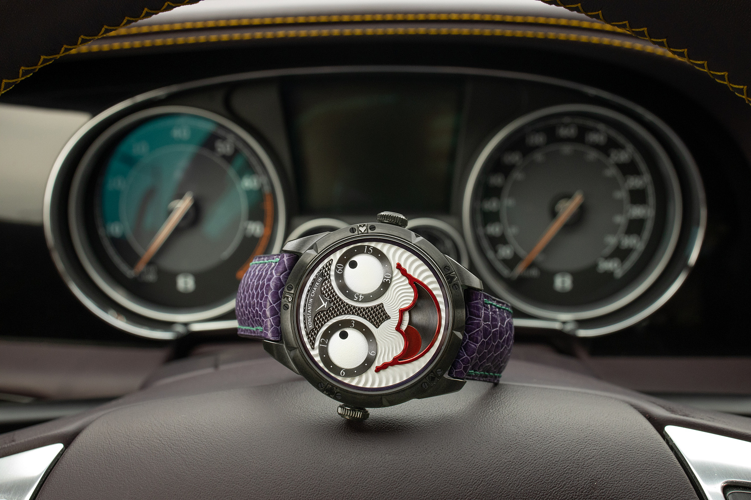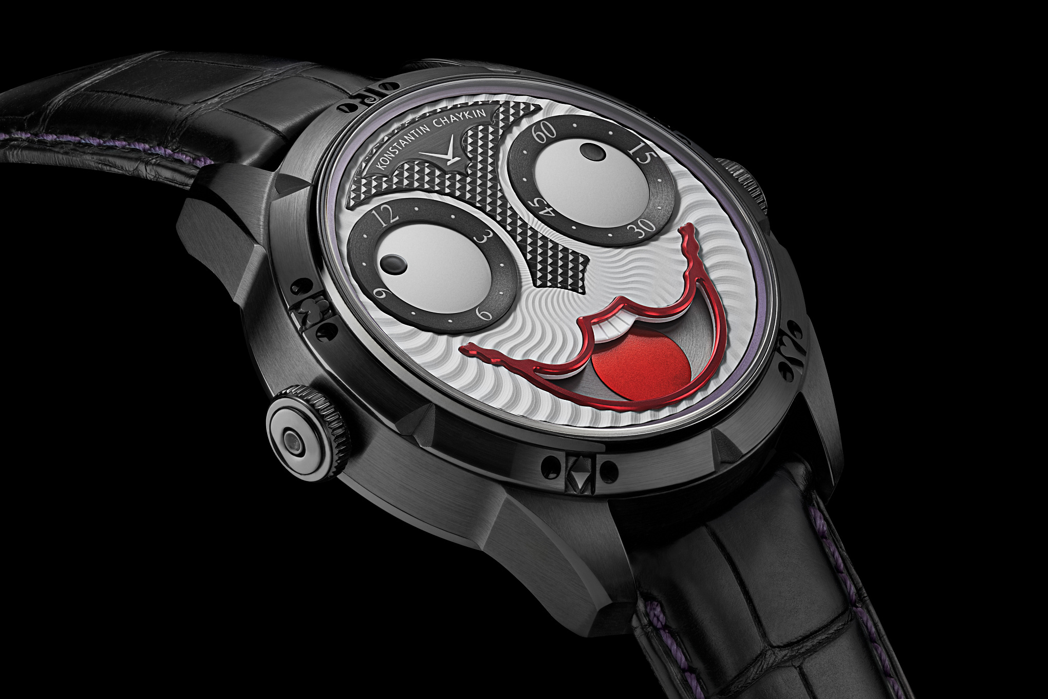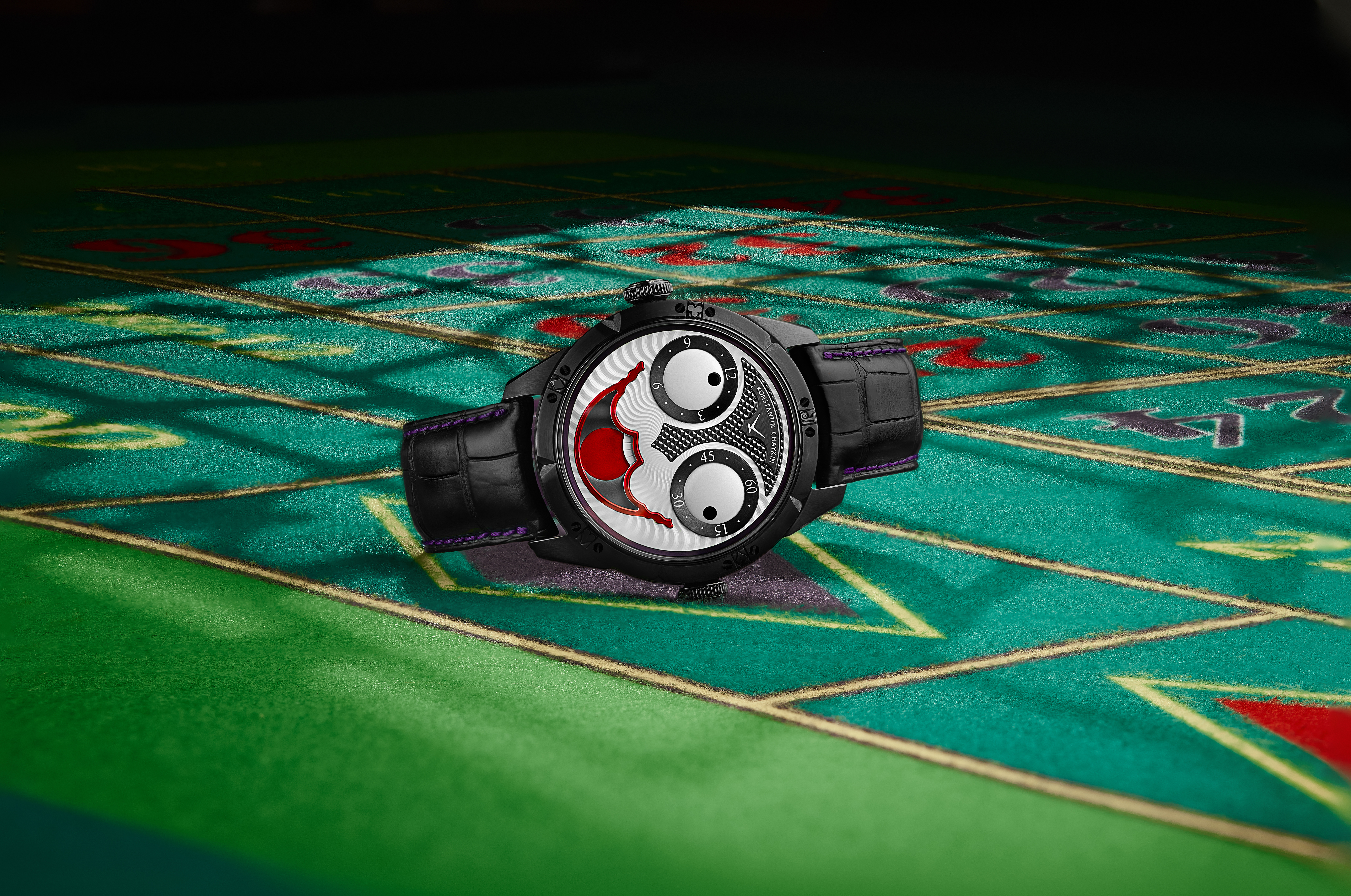 This Joker, as a stylish embodiment of the spirit of gambling and the casino, which undoubtedly suits the imposing black tones emphasised by accents of green and purple, will play by new rules. Konstantin Chaykin says let it be contrary to the established rules of gambling – a risk-free chance to bet on black, while at the same time betting on this black-toned Joker. If you are not a risk-taker, best hold back and leave the chance to get a new emotional experience to other connoisseurs of the watchmaking art of Konstantin Chaykin.