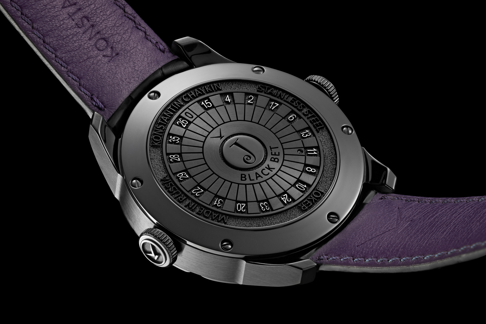The Joker Black Bet watch is equipped with an automatic К.07-0 caliber. The in-house Joker-indication module was designed and produced by Konstantin Chaykin.