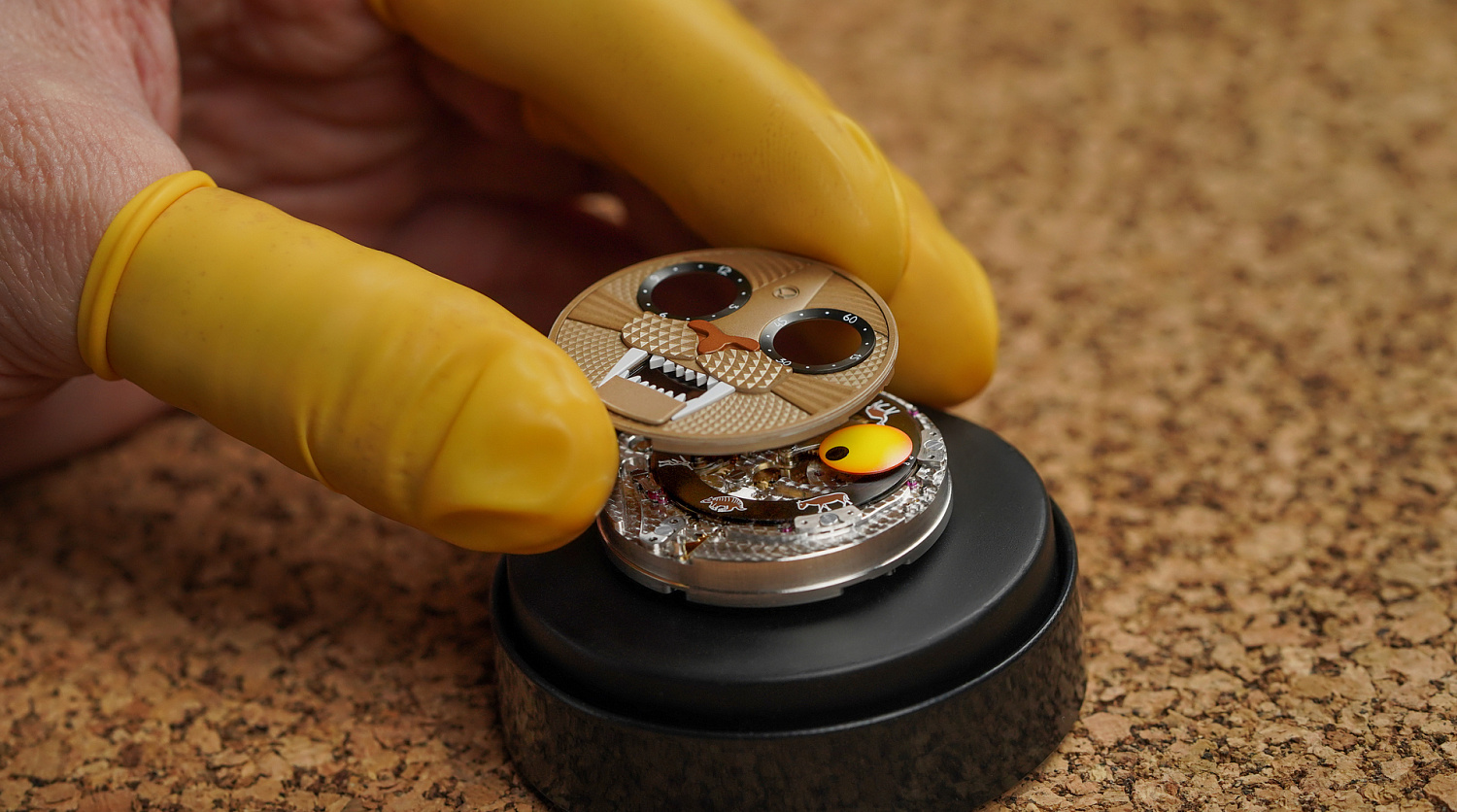 Watching the process of assembling of any of Wristmons is very exciting. You can see how the movement gets trademark wristmon's "eyes" and "smile". These parts form the unforgettable face-like dial.